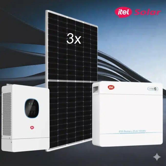 Itel PowerCore 3K Pro: 3KW 24V IP54 Smart Inverter + 2.56kWh Lithium Battery + 1770W High-Power Solar Kit